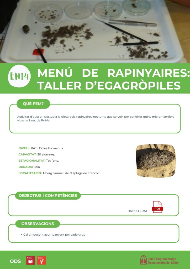 EL MENÚ DE RAPINYAIRES: TALLER D’EGAGRÒPILES