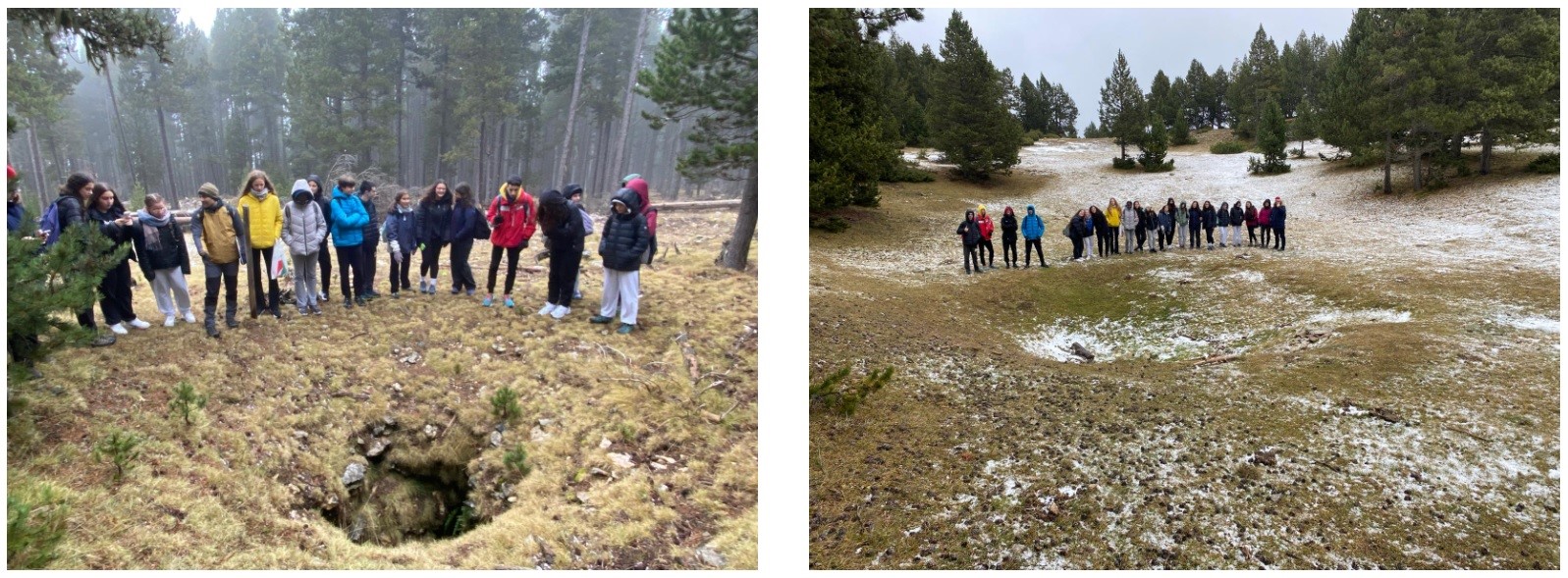 Seguidament, varem anar al Solsonès, concretament a la zona de Coll de Port i a les pistes d’esquí de Tuixent la Vansa, on varem parlar del paisatge càrstic i vam poder apreciar, dolines, rasclers i un espectacular avenc.