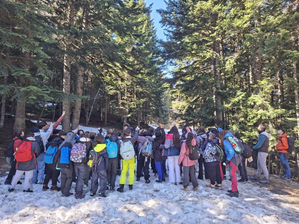 El segon dia ens vam desplaçar al Parc Nacional d’Aigüestortes i Estany de Sant Maurici, encara plenament cobert de neu. Equipats amb raquetes, vam avançar pel paisatge hivernal mentre identificàvem rastres d’animals i utilitzàvem claus dicotòmiques per reconèixer espècies vegetals adaptades a l’alta muntanya.