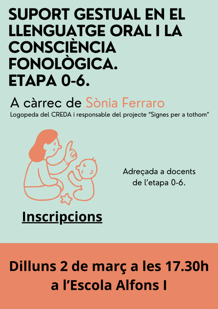 Us convidem a la xerrada “Suport gestual en el llenguatge oral i la consciència fonològica. Etapa 0-6” a càrrec de Sònia Ferraro