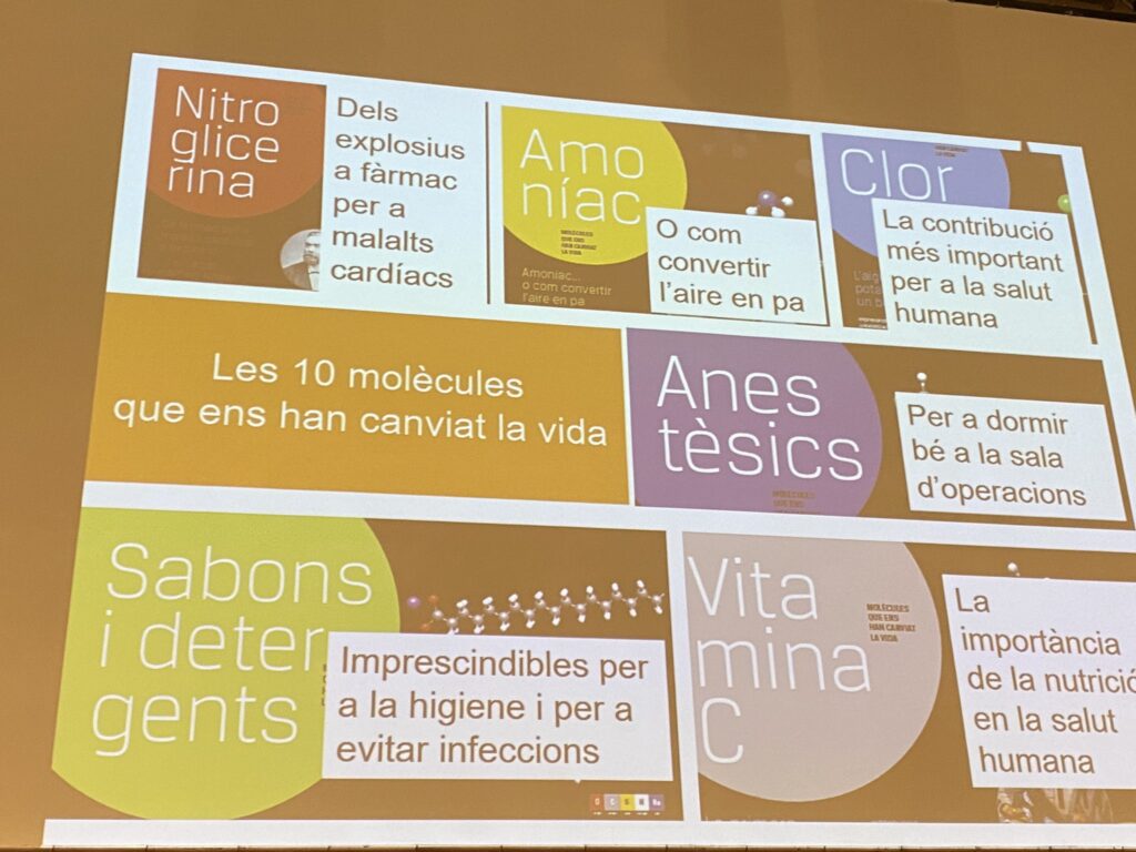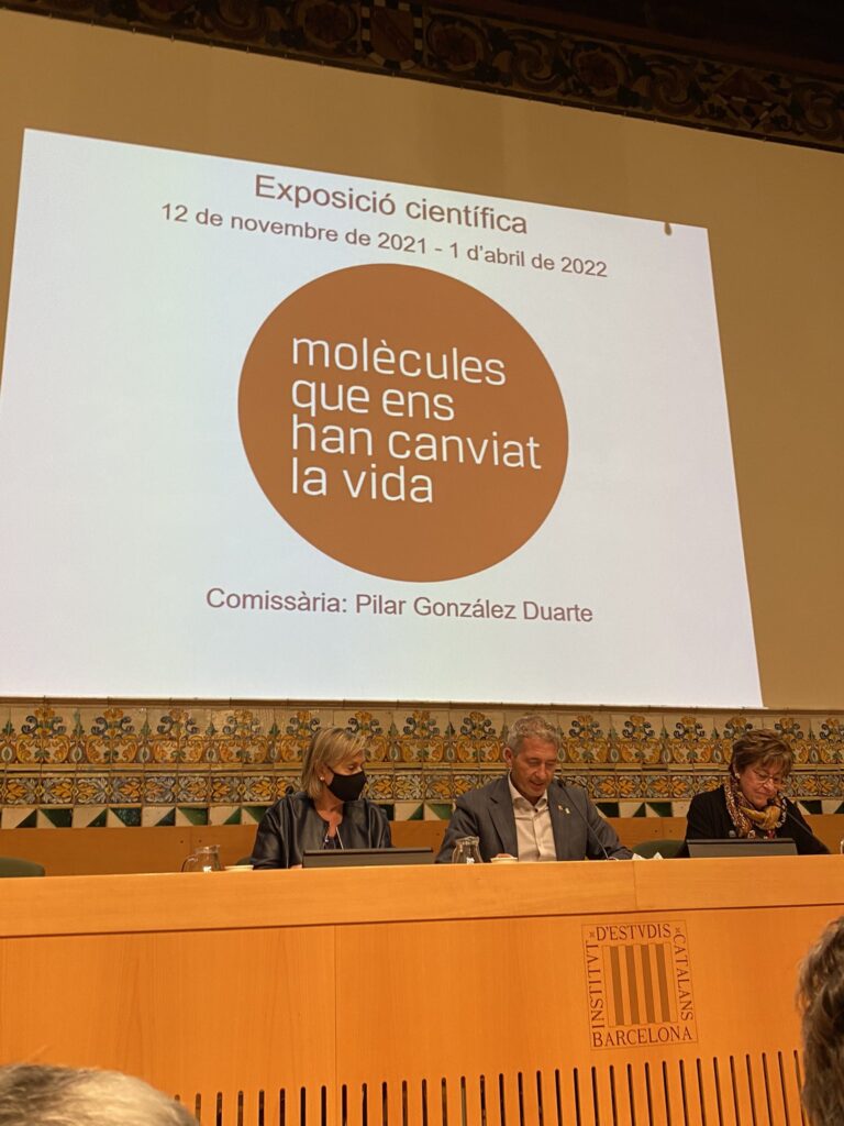 L’acte va coincidir amb la inauguració per part del conseller d’Educació, Honorable Senyor Josep González i Cambray, de l’exposició “Molècules que ens han canviat la vida”. L’exposició està comissariada per la Dra. Pilar González Duarte i suposa, en paraules del conseller, una iniciativa per apropar la ciència als joves i estimular la curiositat i les ganes de saber. Iniciatives com l’exposició “Molècules que ens han canviat la vida” contribueixen a normalitzar el català, a fer-ne un ús social i una llengua en l’àmbit de la ciència. Us recomanem que la visiteu i concerteu horari per visitar-la amb els vostres alumnes.