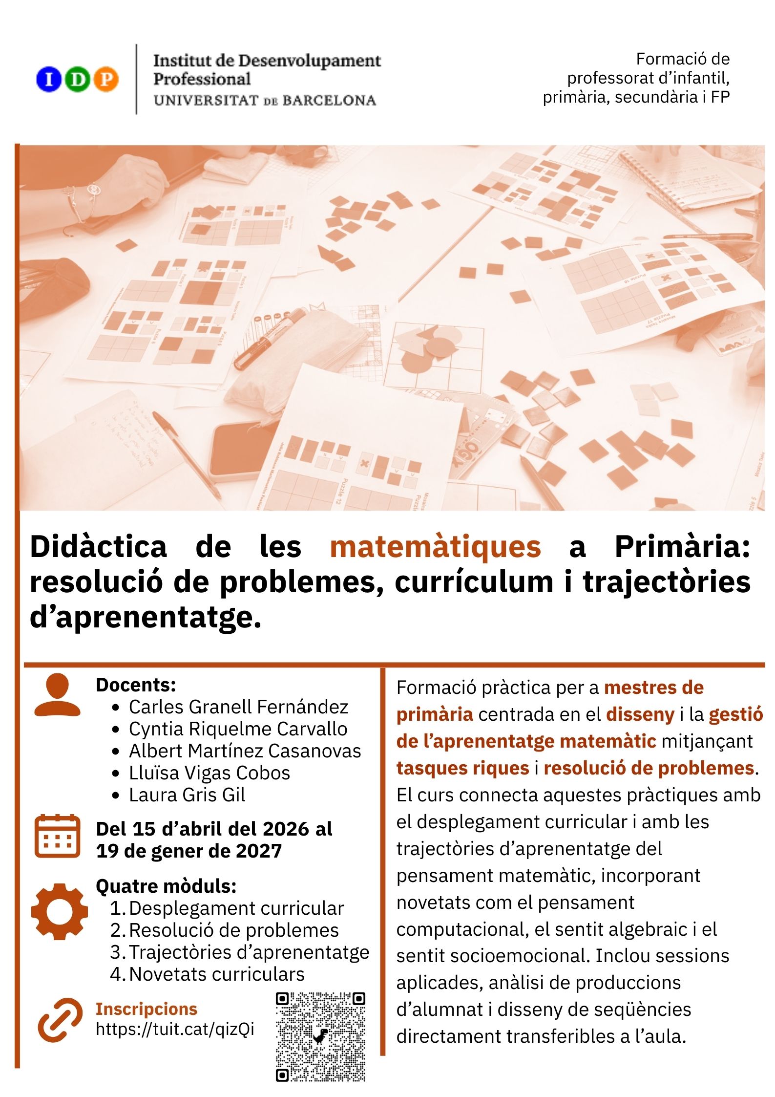 • Formació: Didàctica de les matemàtiques a Primària
