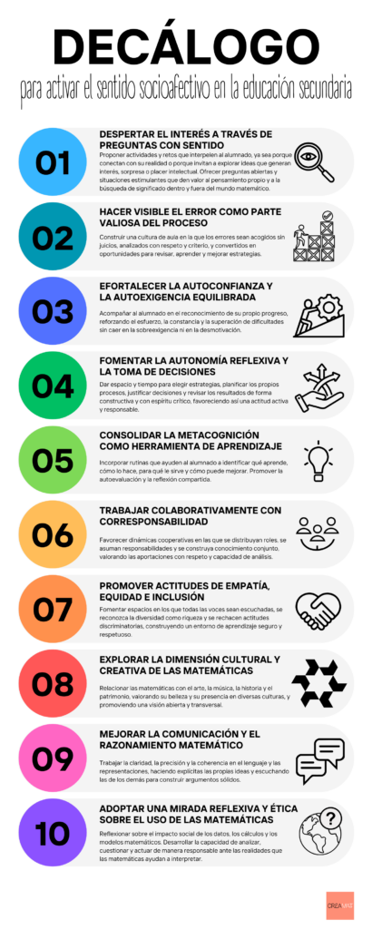 Decàlegs que orienten al docent en l’enfocament del treball del Sentit Sòcio-emocional amb l’alumnat de primària i de secundària.