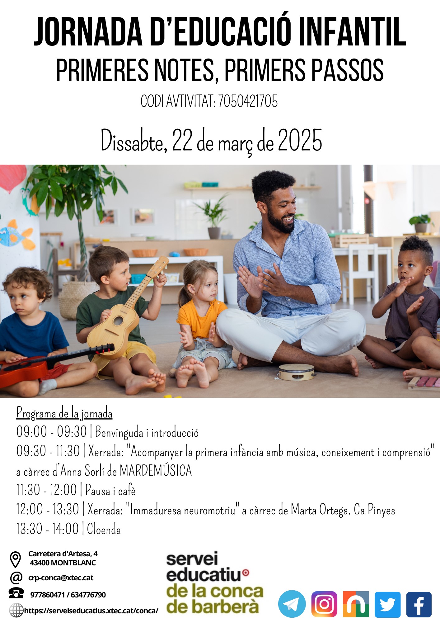 El pròxim dissabte 22 de març, es realitzaran les Jornades d’Educació Infantil 0-6 anys, amb el nom Primeres notes, primers passos de 9h del matí a les 14h del migdia. El programa de la jornada és el següent: 09:00 – 09:30 | Benvinguda i introducció 09:30 – 11:30 | Xerrada: “Acompanyar la primera infància amb […]
