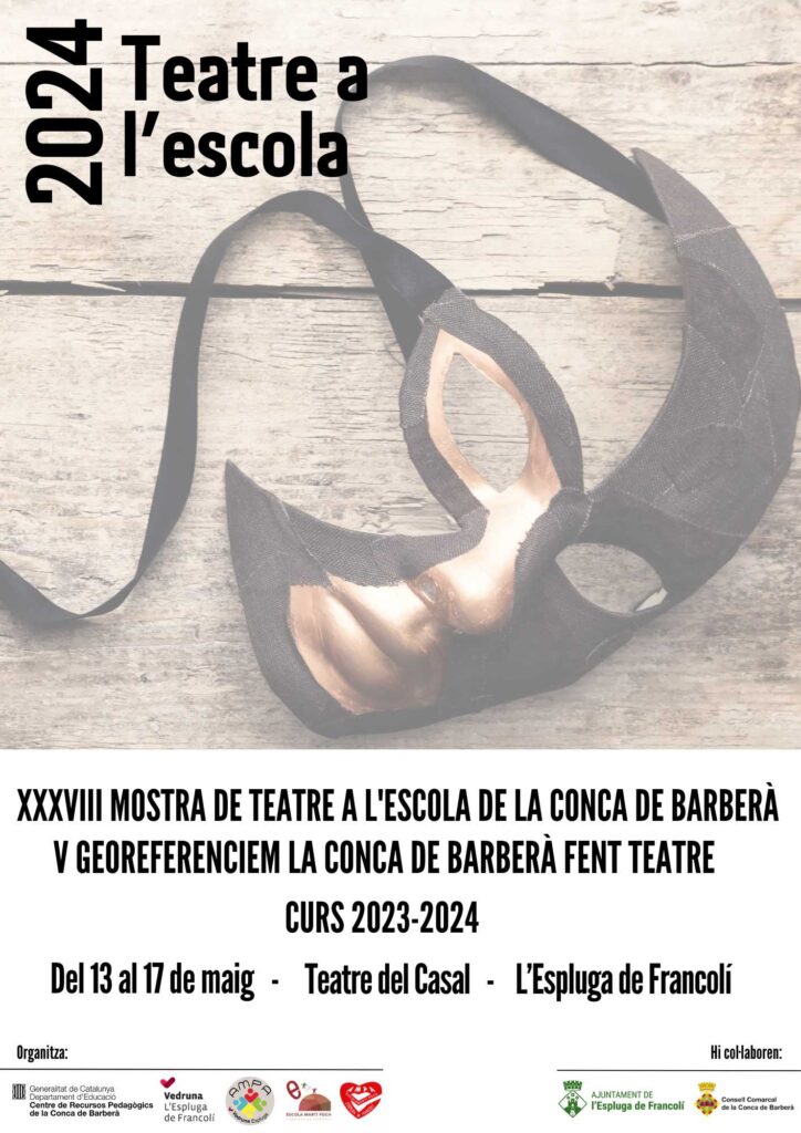 Del 13 al 17 de maig es realitzarà la V edició del Georeferenciem la Conca de Barberà fent teatre que acull la XXXVIII edició de la Mostra de teatre a l’escola. En aquesta edició ens acollirà la comunitat educativa de L’Espluga de Francolí. A sota hi trobareu el cartell d’aquest curs i també el programa de […]