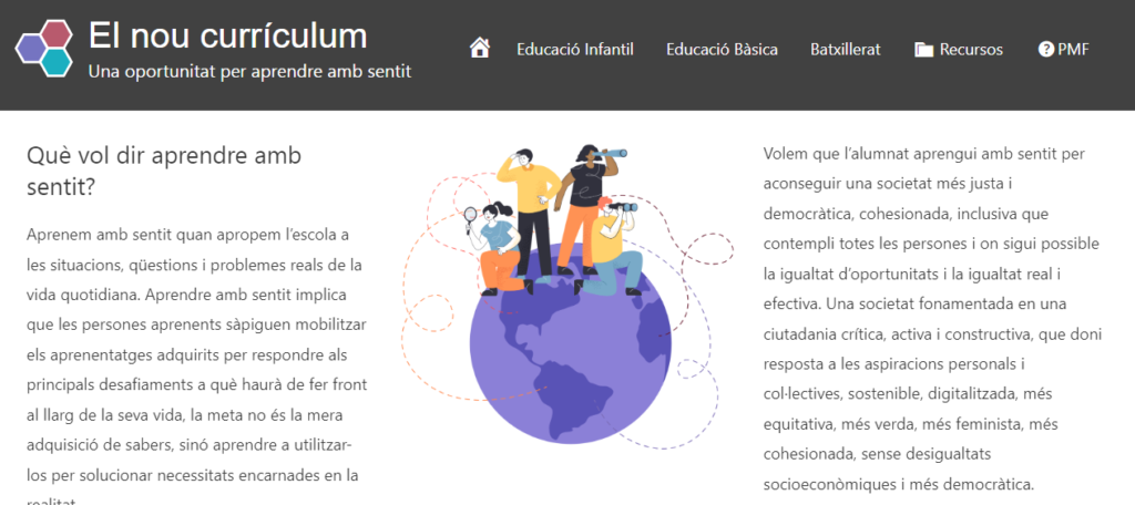 El nou currículum. Una oportunitat per aprendre amb sentit; aquest és el títol del Nodes del Departament d’Educació que recull les idees claus, infografies, recursos, cronograma i preguntes freqüents del nou currículum.