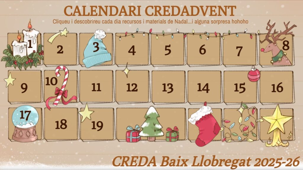Cada any, per aquestes dates, arriben els calendaris d’Advent plens de desitjos, sorpreses i, com no, xocolata. Però a la Mediateca–TAC del CREDA Baix Llobregat hem volgut fer un pas més enllà i crear un calendari que us ompli d’idees, creativitat i recursos.
