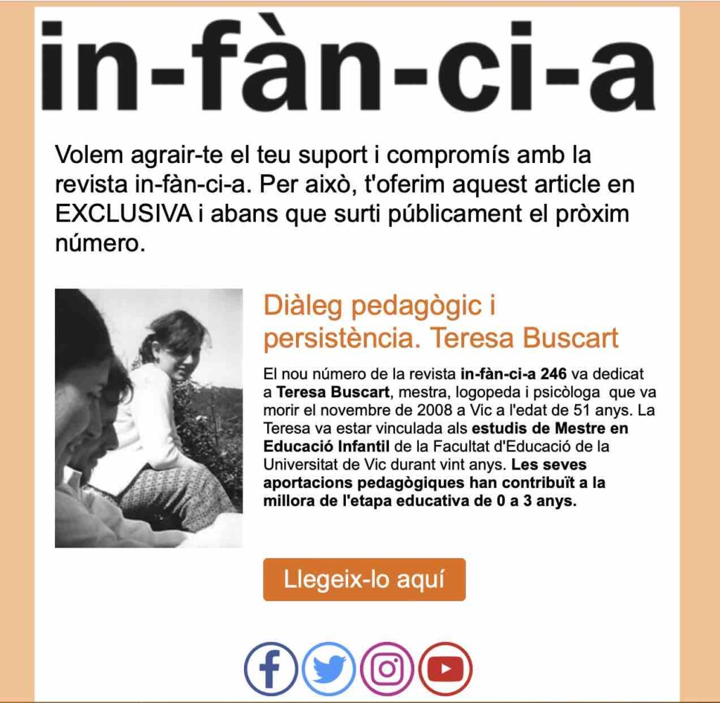 Article homenatge de la revista In-fàn-ci-a sobre la Teresa Buscart.