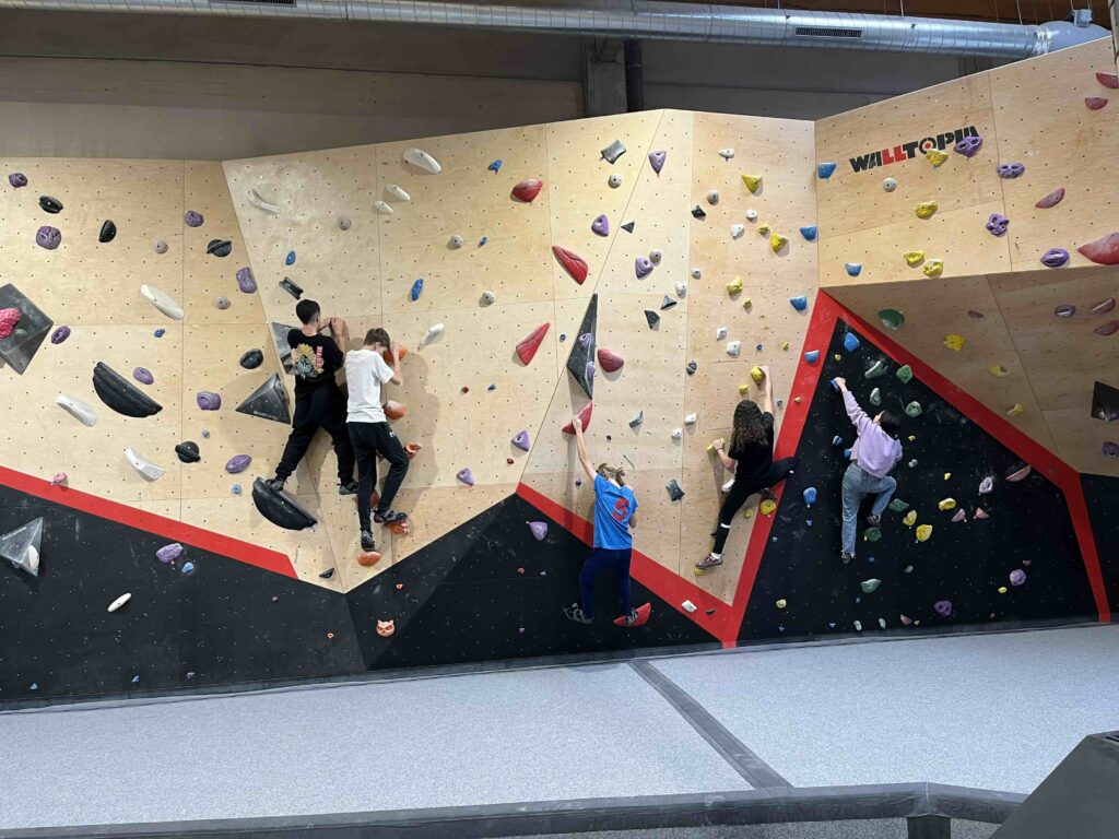 Els alumnes de secundària del Berguedà gaudeixen de l’escalada durant la seva primera trobada a Berga.