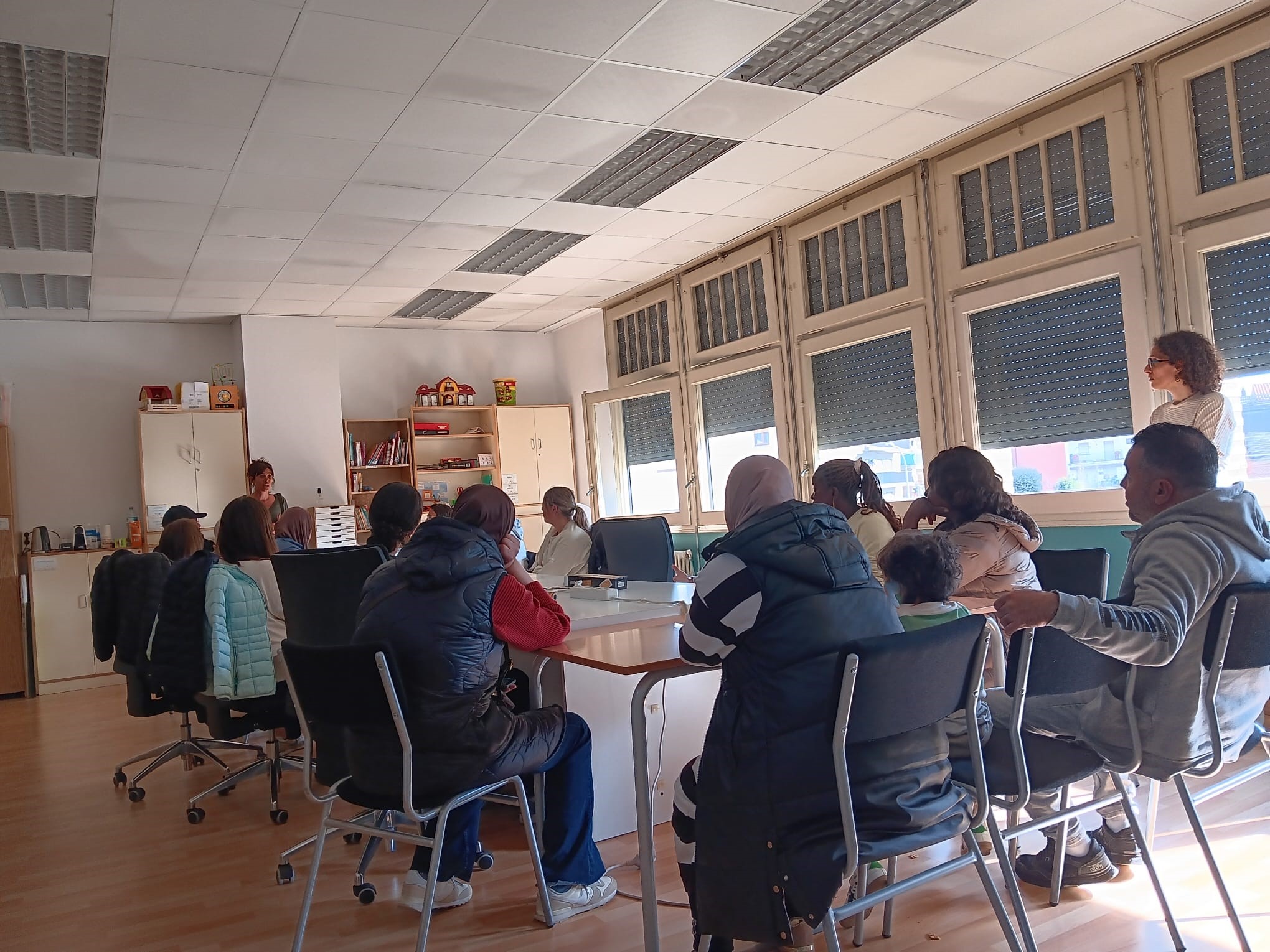 - Espai per a les famílies: Mentre els infants jugaven, els adults es van reunir a la sala gran per conèixer la proposta de la “Biblioteca Humana”, una iniciativa presentada pel personal de la Biblioteca Pilarín Bayés.