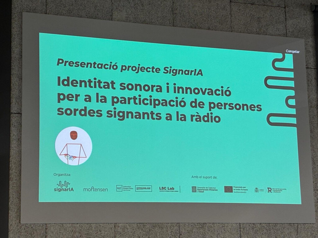 El 17 de març, va haver la presentació del Projecte SignarIA al Campus de Poblenou de la Universitat Pompeu Fabra.  SignarIA suposa un pas endavant en l’accessibilitat comunicativa amb la creació i el desenvolupament d’un prototip de veu sintètica personalitzada. Aquesta eina pionera permetrà que les persones sordes signants puguin participar activament en programes de ràdio i produccions audiovisuals, sense haver de renunciar a la seva llengua pròpia, la llengua de signes catalana (LSC).