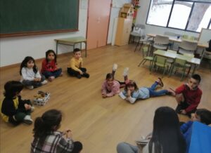 Primer de tot, vam jugar a passar-nos la pilota per coneixer-nos, tot dient els nostres noms, els noms de les escoles, a quin curs anaven, qui era la seva logopeda… Ens va costar recordar els noms, però al final vam conseguir recordar-los!
