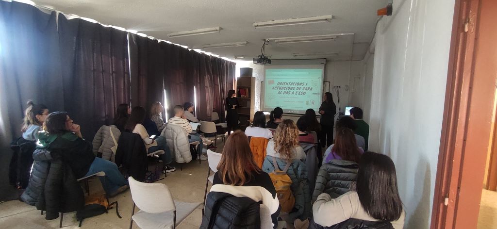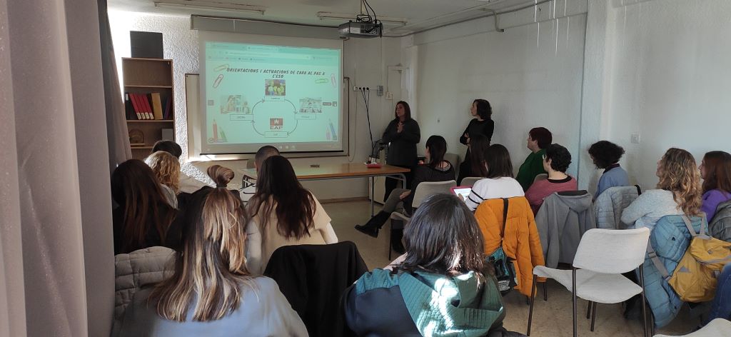 Posteriorment, la Mireia Rom i la Carol Lage van explicar el procés d’acompanyament i valoració que es fa amb l’alumnat sord que passa de primària a secundària.