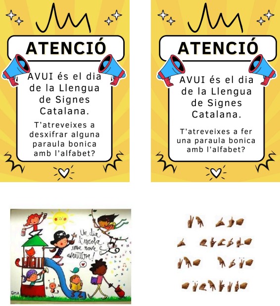 El 3 de juny es va celebrar el Dia de la Llengua de Signes Catalana. En motiu d’aquesta celebració, l’alumnat de l’Institut-Escola Mar Mediterrània, va celebrar aquesta data amb la creació d’un mural col·lectiu, que es va penjar a l’entrada del centre. Els i les alumnes de primària van participar escrivint paraules boniques utilitzant l’alfabet dactilològic, les quals es van col·locar al mural de l’entrada. Així mateix, les classes de secundària van desxifrar frases en l’alfabet dactilològic. A més, vam deixar una frase sorpresa per al professorat en dactilologia.