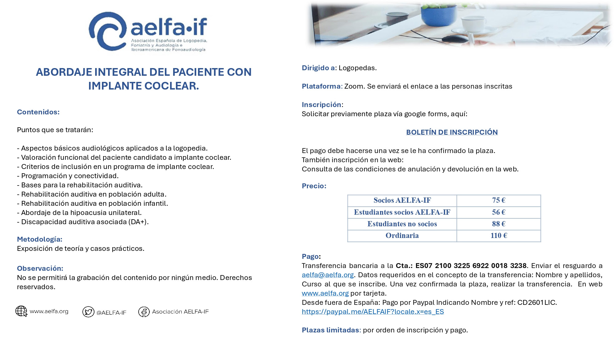 Us compartim un curs organitzat per AELFA-IF que pot ser del vostre interès.