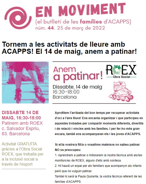 Famílies recuperem les sortides a l’aire lliure: el 14 de maig, totes a patinar! Feu un comentari / Per Eva Águila Martínez / 29/03/2022 / General Portada Inscripció