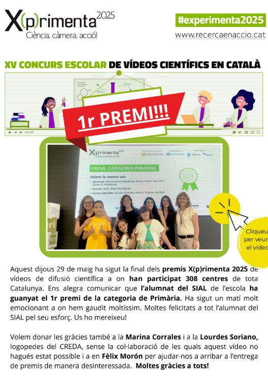 Premis EXPERIMENTA: VEIEM LA NOSTRA VEU Feu un comentari / Per Eva Águila Martínez / 13/06/2025 / Alumnat Famílies General Portada