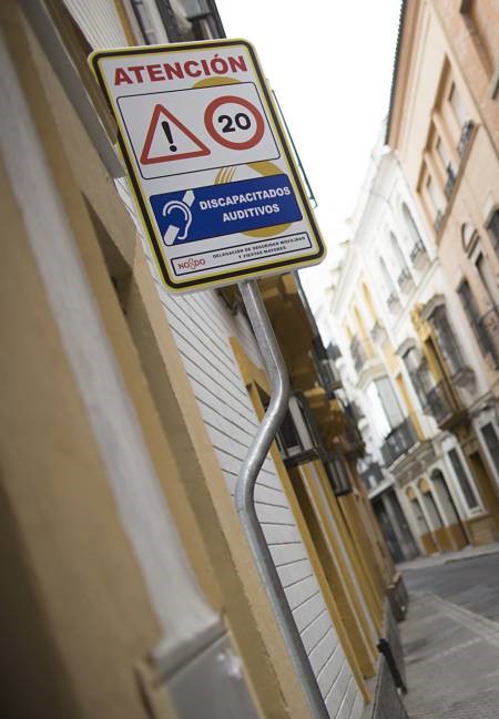 L’ajuntament de Sevilla ha instal·lat una senyalització de trànsit pionera per avisar als conductors sobre l’existència d’una zona molt transitada per a persones amb dificultats auditives. Al centre històric de la ciutat on els carrers són estrets i les voreres quasi inexistents, es troba la seu de: ” Asociación Centro Cultural de Sordos Torre del Oro”
