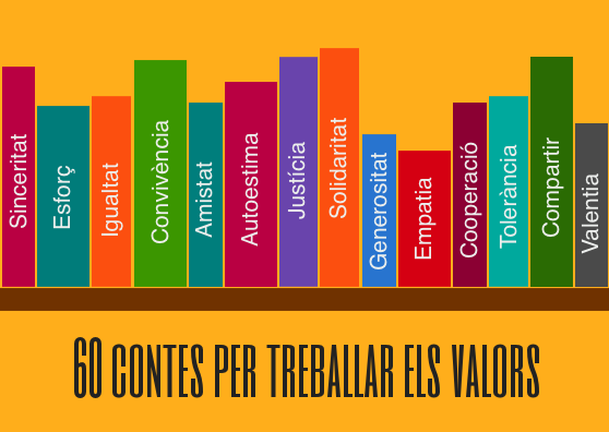 Hem trobat al Blog de la Nati Bergadà un recull de contes per treballar els següents valors: Aprendre a ser i a pensar (Autoconeixement, autoestima, les emocions, el diàleg, habilitats de reflexió…) Aprendre a actuar de manera autònoma i coherent (Autonomia, cultura de l’esforç, responsabilitat…) Aprendre a conviure (Empatia, habilitats socials, cooperació, solidaritat, altruisme, amistat,