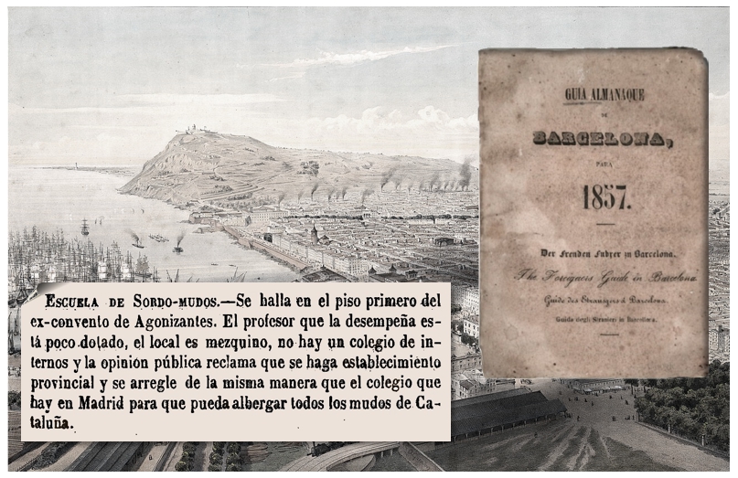Les guies de Barcelona del segle XIX, com per exemple aquesta de 1847, contenien “cuanto puede ser útil á los forasteros y habitantes”. Acostumaven a incloure una ressenya de l’Escola Municipal de Sords-Muts. Fins i tot en alguna es deia que “Barcelona es conocida por su puerto y por su escuela de sordo-mudos”.