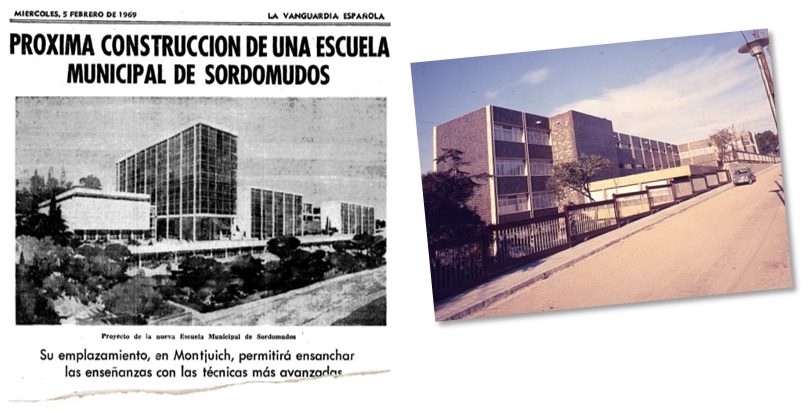 Finalment, al cap de 2 anys, el 7/02/1970 es va inaugurar l’edifici i el canvi de nom: L’Escola Municipal de Sors-Muts va passar a dir-se “Centre Municipal Fonoaudiològic “José María de Pordioles””. Va ser inaugurar per “SS.AA.RR. los Príncipes de España don Juan Carlos y dona Sofía”, aprofitant que venien de visitar el Saló Nàutic. Van assistir ministres, el governador civil, el governador militar, el bisbe auxiliar, que va beneir el centre, etc… tota una posta en escena previsible en el marc del tardofranquisme. Es deia que en José M de Porcioles, alcalde de la ciutat durant aquella època, havia impulsat la creació del centre perquè tenia una petita dificultat de parla. Res gaire important: Si avui fos un nen en edat escolar les psicopedagogues del CREDA possiblement li atribuirien un comportament lingüístic “G”. La Vanguardia va publicar una extensa ressenya de l’acte el dia següent, el 8/08/1970. Cliqueu aquesta frase si voleu llegir l’article complet.