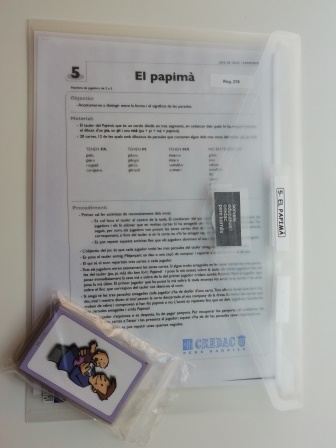 Descripció breu: Aprendre a distingir entre la forma i el significat de les paraules. 20 cartes. 1 tauler Papimà.