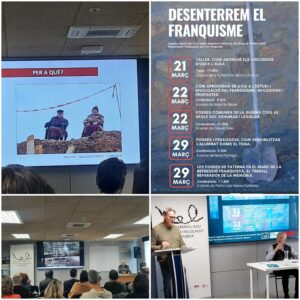 Aquest mes de març durant un divendres al vespre i dos dissabtes al matí hem participat a la formació “Desenterrem el franquisme” impulsada per grup de treball Exili Deportació i Holocaust de l’Alt Empordà amb el suport del Servei Educatiu de la mateixa comarca.