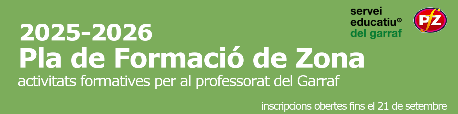 Des del Servei Educatiu del Garraf us recordem que, a partir del 5 de setembre de 2025, i fins al 21 de setembre de 2025, estarà obert el període d’inscripció per al primer torn de l’oferta formativa del Garraf per al curs 2025-2026. Us agrairíem enormement que feu arribar aquesta informació a tots els membres del vostre equip docent.