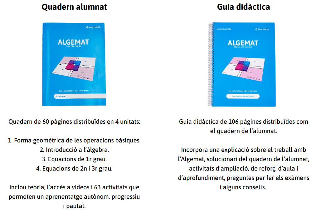 Material didàctic per treballar l’àlgebra de forma manipulativa i visual. Recomanat per totes les etapes de l’ESO, especialment per 2n ja disponible en préstec al CRP.