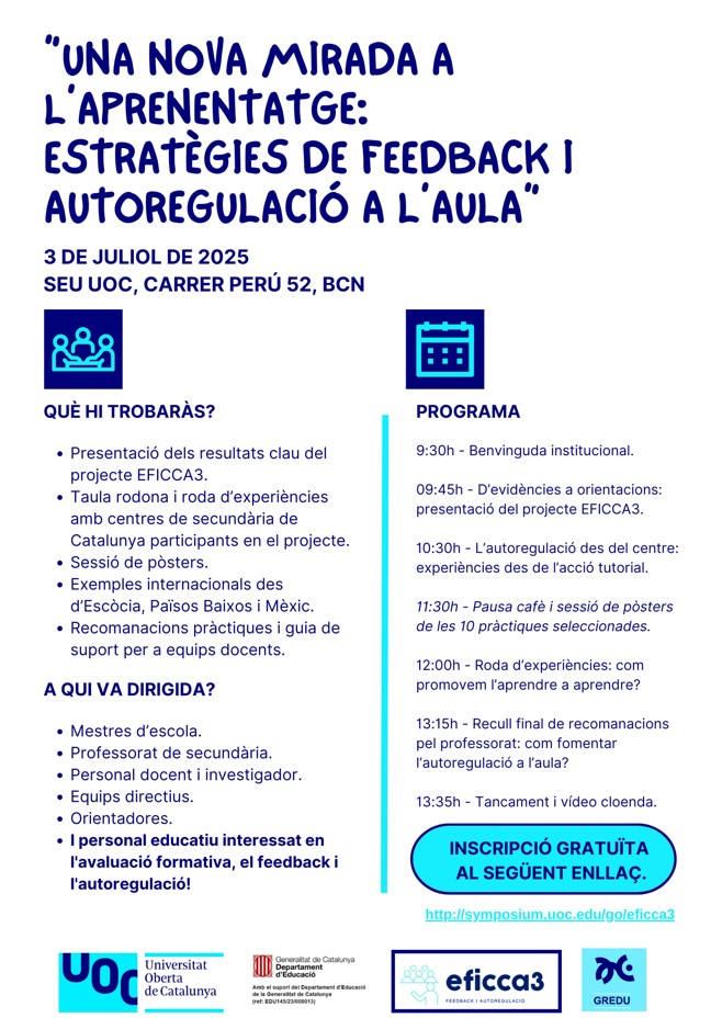 Aquesta jornada és la culminació del projecte EFICCA3: “Estratègies de feedback intern per al desplegament dels nous currículums competencials: cap a l’autoregulació de l’aprenentatge de l’alumnat”, que s’alinea amb els reptes actuals del sistema educatiu.