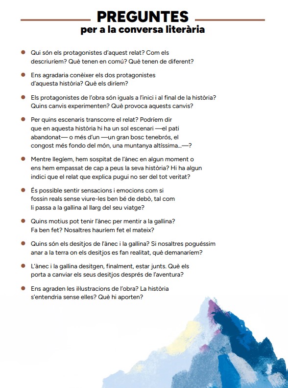 Des de l’àrea d’Inclusiva s’han elaborat set guies de lectura que tenen com a objectiu promoure la reflexió i la conversa a l’aula sobre temes claus vinculats a la inclusió: percepcions, pors, relacions, diversitat i convivència. Cada guia ofereix una contextualització del llibre proposat i una proposta de preguntes generadores de conversa. Les guies estan pensades com a recursos pràctics per a mestres de qualsevol etapa educativa que vulguin fomentar espais de conversa significativa i inclusiva a partir de la literatura.