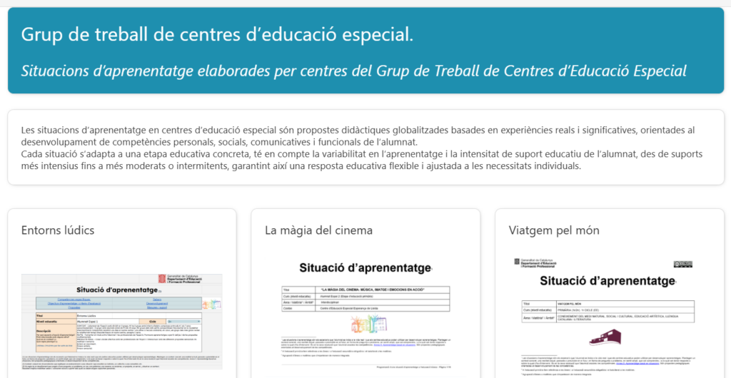 Situacions d’aprenentatge CEEPer admin / 21/04/2026 / General Compartim amb vosaltres diferents situacions d’aprenentatges elaborades per centres del Grup de Treball de Centres d’Educació Especial.