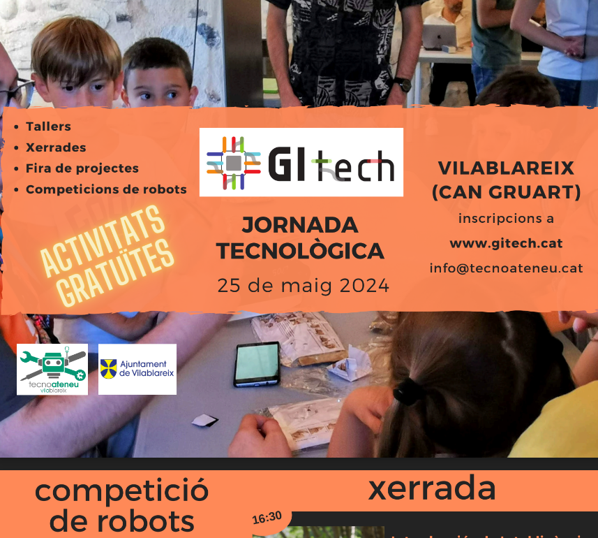 El 25 de maig hi ha la GItech, Jornada Tecnològica, a Can Gruart de Vilablareix. Hi trobareu tallers, xerrades, fira de projectes, competicions de robots, foodtrucks.. Trobareu més informació a https://gitech.cat/