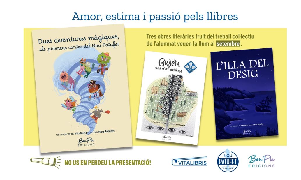 Aquest projecte es va engegar a l’escola el curs 2023-2024, de la mà de Vila del llibre, amb la intenció de dur a terme un procés de creació cultural cooperativa que estudiï i implementi tots els processos, feines i oficis que tenen relació amb la creació d’un llibre. Aquest curs 2024-2025 s’ha consolidat el projecte, treballant a tots els nivells, des d’I3 fins a 4t d’ESO, i arribant al resultat de l’edició de tres llibres en els que els autors i autores han estat els infants i joves de l’escola.