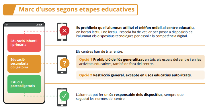El Departament d’Educació ha establert unes directrius clares per assegurar que l’ús dels mòbils no interfereix amb el procés d’aprenentatge de l’alumnat.