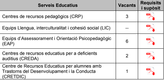 Previsió vacants als Serveis educatius a Badalona, Hospitalet de Llobregat, Sant Adrià de Besòs, Santa Coloma de Gramenet, Alt Penedès (Vilafranca del Penedès), Garraf (Vilanova i la Geltrú)