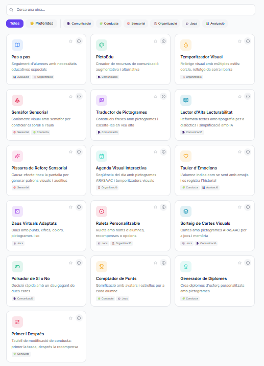 Us presentem un conjunt de 16 eines digitals pensades per facilitar la comunicació, la gestió de la conducta, l’organització i l’avaluació de l’alumnat, especialment útils en contextos d’atenció a la diversitat.