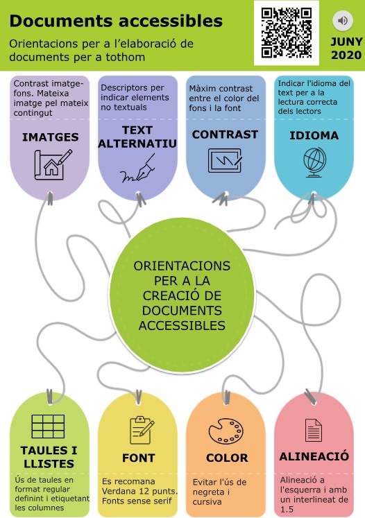 El Departament d’Educació, en el seu nodes d’Educació Inclusiva, presenta una interessant Infografia general sobre Documents Accessibles. Aquesta infografia, va acompanyada d’un Document amb informació més detallada sobre l’accessibilitat en textos, tant impresos com en pantalla.