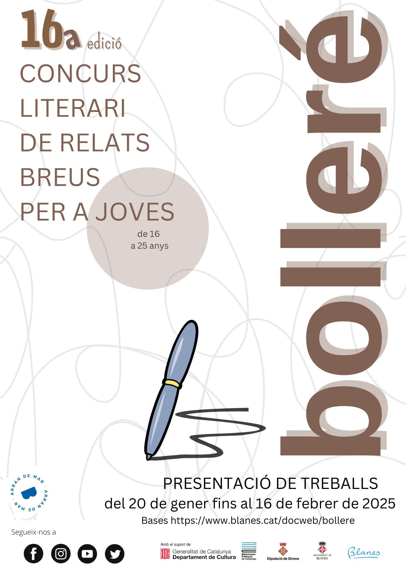 Clicant a continuació trobareu les Bases i sistema de presentació a més a més del formulari que s’ha d’adjuntar al relat que participi al Concurs:
