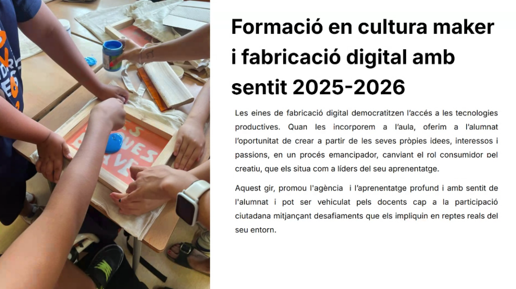 Les formacions que segueixen d’aquí cap avall són les que es van oferir el curs passat 2025-2026 com novetats formatives, des de les diferents unitats del Departament. Les anirem actualitzant a mesura que en tinguem informació.