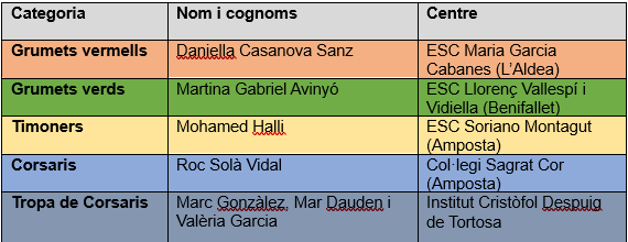 Podeu veure l’acte seguint aquest enllaç: https://www.youtube.com/watch?v=agJe63BUfwI. Els guanyadors/es del certamen territorial participaran en la Festa de la lectura que se celebrarà a Barcelona el proper 13 de juny, on es farà el lliurament de guardons als seleccionats i seleccionades territorials i es durà a terme una mostra de lectura no competitiva. A continuació us donem a conèixer el/les alumnes guanyadors/es de cada categoria.