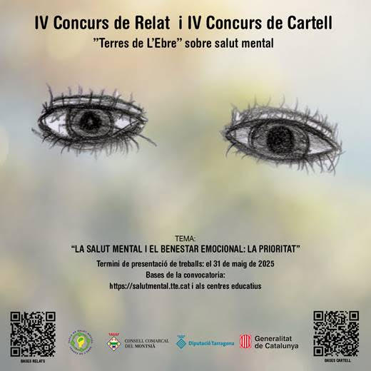 Amb el lema “La salut mental i el benestar emocional: la prioritat”, els cursos de 5è i 6è i d’ESO dels centres educatius de les Terres de l’Ebre poden participar amb el IV concurs de relat i de cartell sobre la salut mental. El termini de presentació dels treballs és fins el 31 de maig de 2025