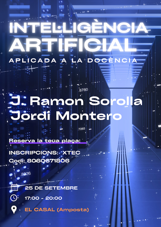 La xerrada-taller Intel.ligència Artificial aplicada a la docència anirà a càrrec de J. Ramon Sorolla i de Jordi Montero, ambdós professors de Tecnologia a l’INS de Tecnificació d’Amposta.
