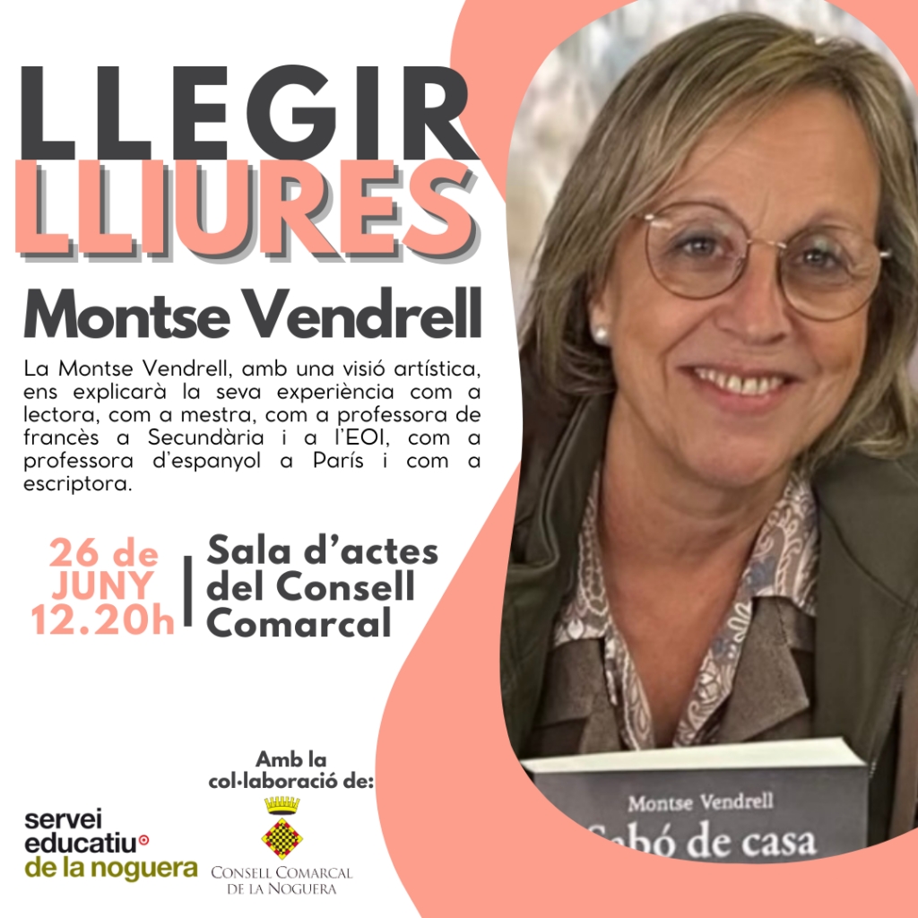 El dimecres 26 de juny, tindrà lloc la conferència “Llegir lliures” a càrrec de Montse Vendrell al Consell Comarcal de la Noguera.