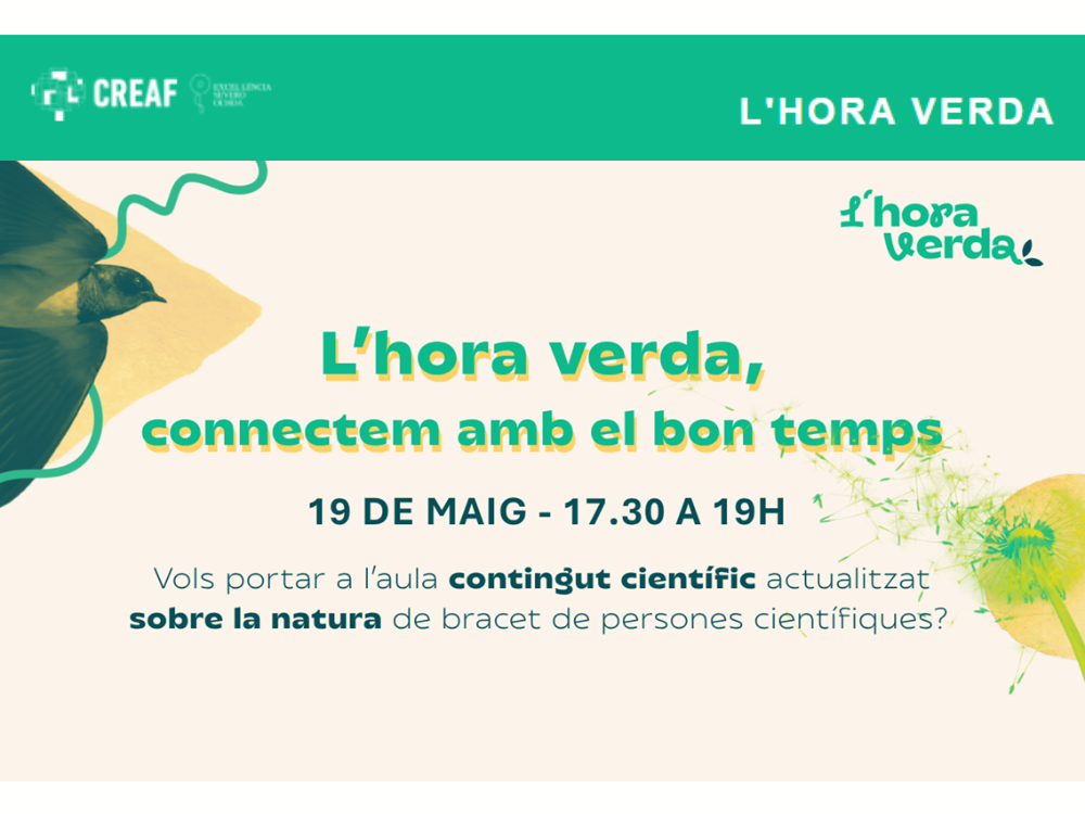 Fem la tercera Hora Verda! L’Hora Verda, el projecte d’Escoles Verdes i el CREAF per connectar amb la natura i tenir una finestra oberta a la ciència, presenta la tercera i última edició del curs: la ciència del bon temps! Està adreçada a professorat de primària i de secundària. L’Hora Verda consta de tres webinars online que […]