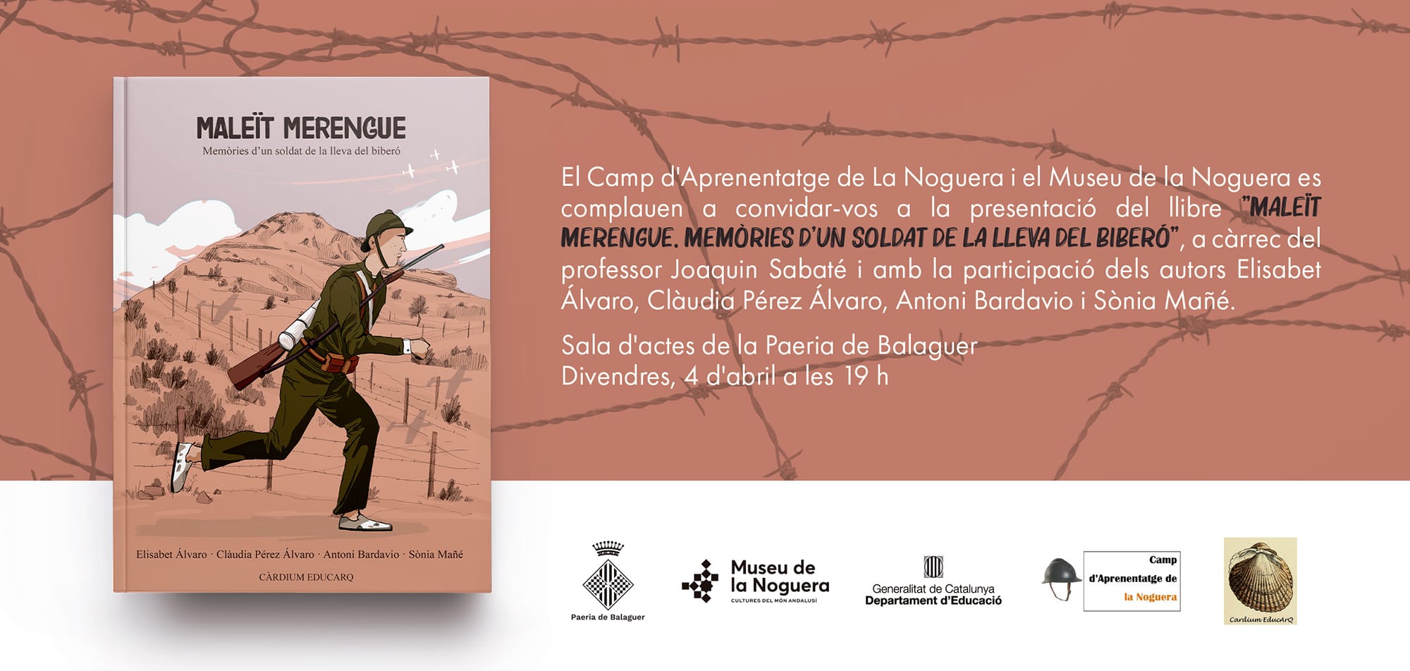 El Camp d’Aprenentatge de la Noguera i el Museu Comarcal de la Noguera presentaran el proper divendres 4 d’abril la publicació “Maleït Merengue”, les memòries d’un soldat de la lleva del biberó que va viure en primera persona la batalla que es va lliurar en aquest espai de la Noguera. Els textos, recuperats per la família Álvaro, relaten en primera persona les vivències d’un jove obligat a lliurar una dura batalla en el Front del Segre.