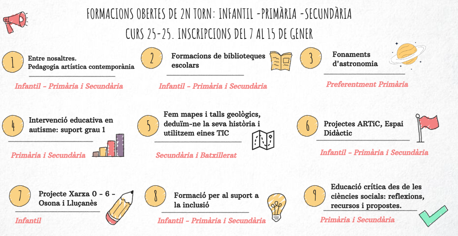 Ja teniu publicades les activitats del Pla de Formació de zona per al segon torn. Les inscripcions són del 7 al […]
