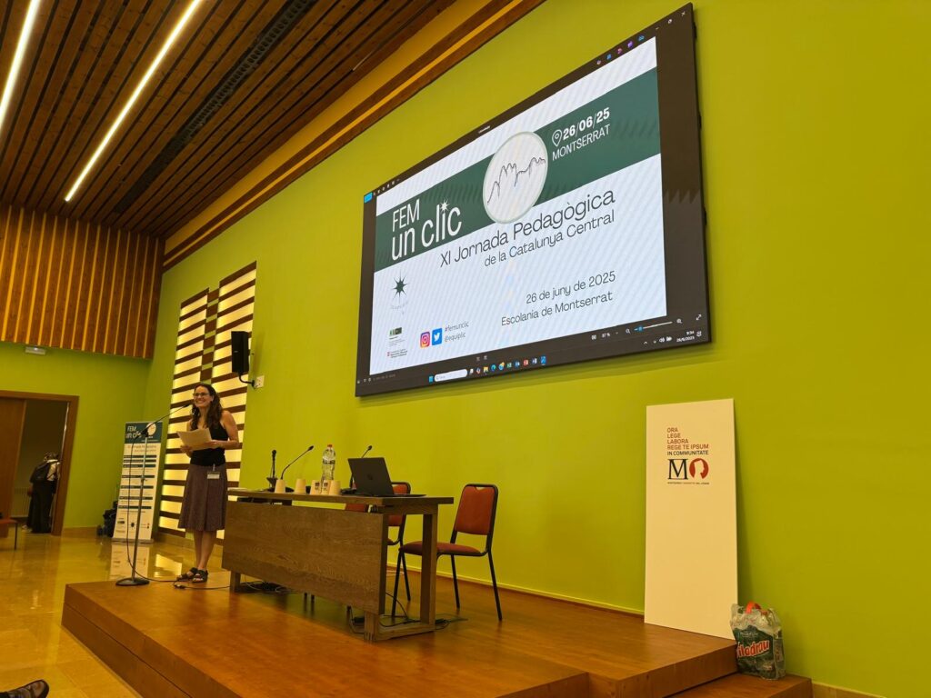 La segona part de la jornada es va centrar en la interculturalitat a les aules, en una taula rodona amb experiències de l’INS Antoni Pous i Argila, de Manlleu; l’Escola Bages, de Manresa, i l’INS Castellet, de St. Vicenç de Castellet. Les seves visions de la coexistència de diferents cultures a l’escola van posar de manifest que cal un treball en xarxa i una bona comunicació entre els agents participants. Marta Casas, de l’INS Antoni Pous, va reconèixer que “algunes vegades has de forçar les costures del sistema”, referint-se a les dificultats que comporta la pròpia organització horària del centre. Marta Cardona i Txell Dachs, de l’Escola Bages, van remarcar la implicació de les famílies en el seu projecte, basat en sessions de contes en diferents llengües d’origen. Pel que fa a l’INS Castellet, Miren Uharte i David Saborido, van compartir una experiència ERASMUS a França, a partir de la qual, els alumnes “troben sentit a l’aprenentatge d’un llengua que no és la seva” i constaten la diversitat de creences religioses i culturals.