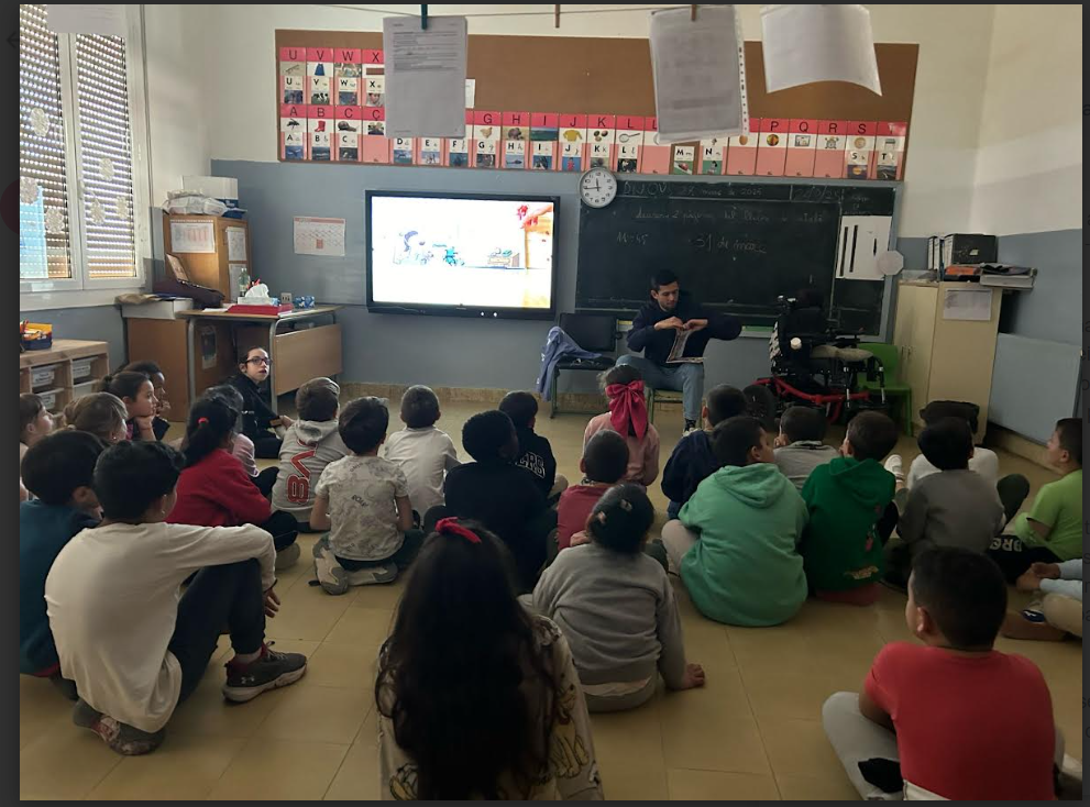 – El primer bloc teòric que ha durat tot el matí, s’han realitzat diferents exposicions/xerrades del que és l’esport adaptat a través de vídeos (Cicle Superior), o a través d’un conte narrat (Cicle Inicial). Per a l’exposició de Cicle Superior s’ha comptat amb la participació activa de la Leyre per l’explicació teòrica de la Boccia.