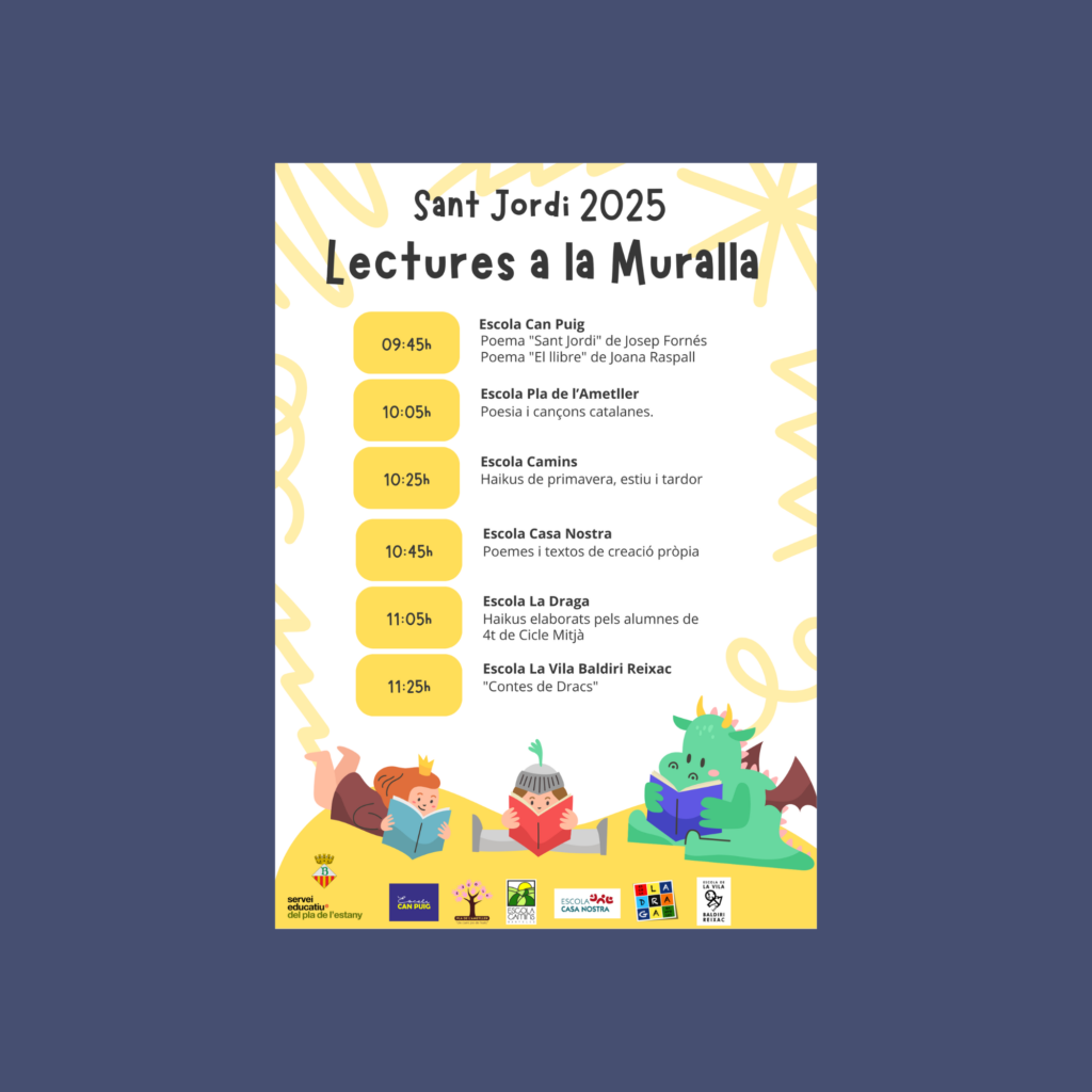 📖 LECTURES A LA MURALLA – SANT JORDI A BANYOLES 🌹 Aquest 23 d’abril, celebrem Sant Jordi amb una activitat